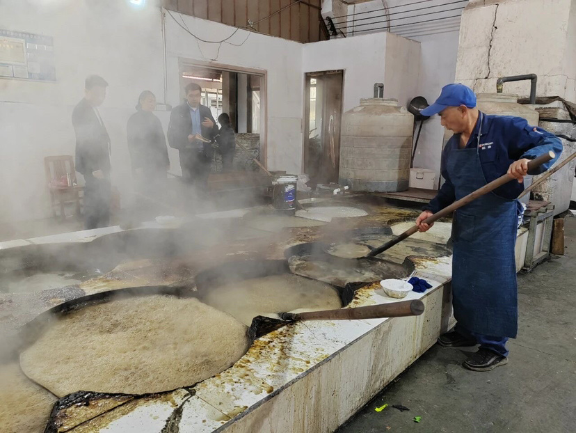 十口锅热气蒸腾,糖梗汁一轮轮蒸馏过后,留下的粘稠物沉淀冷凝,结成了红糖块。这种古法压榨的红糖,过程透明,无添加,保留着天然的甜蜜和香味,在市场上深受欢迎。当日,有市民从很远的地方来郭浦朱村购买红糖和红糖麻花、红糖酥饼、红糖核桃等衍生品。